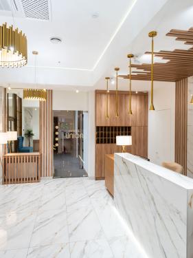 Современный отель Юнион - это идеальное место для семейного отдыха или активного туризма. Необычное в архитектурном решении трехэтажное здание отеля расположено на одном из главных проспектов в центральной части города в двух шагах от Театральной площади, где проходят городские культурные мероприятия. Рядом находится кинотеатр и городской театр, в шаговой доступности Набережная Горького и Набережная Терешковой, открытая для прогулок после реконструкции в 2024 г. За считанные минуты можно дойти до старого города, по которому проходит известный туристический маршрут Малый Иерусалим. Дорога до песчаного пляжа займет 10 минут ходьбы.